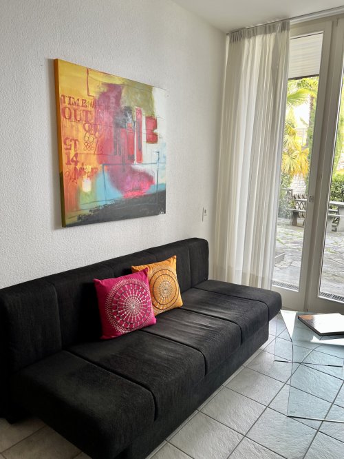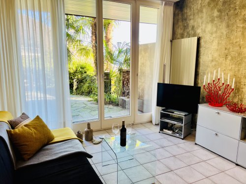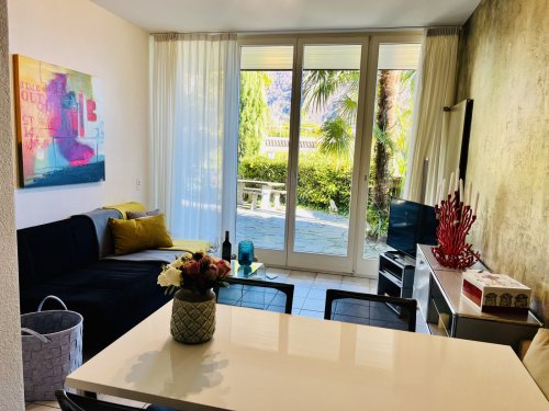 Sehr grosse und helle 2 ½ Parterrewohnung mit Aussicht auf den Lago Maggiore und grossem Aussenpool zu verkaufen - Optional - die neu sanierte Wohnung (70m2, Terrasse 50m2) gleich nebenan könnte dazugekauft werden.