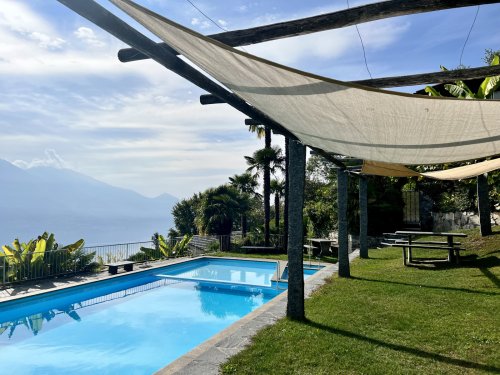 Von der Wohnung haben Sie einen direkten Zugang zum sehr grossen Aussenpool mit Pergola, zwei „Tessiner Granittischen“ und einer schönen Liegewiese. Hier geniessen Sie eine fantastische Aussicht auf die Magadinoebene, den Lago Maggiore und nach Italien und finden Ruhe und Erholung vom Alltag.